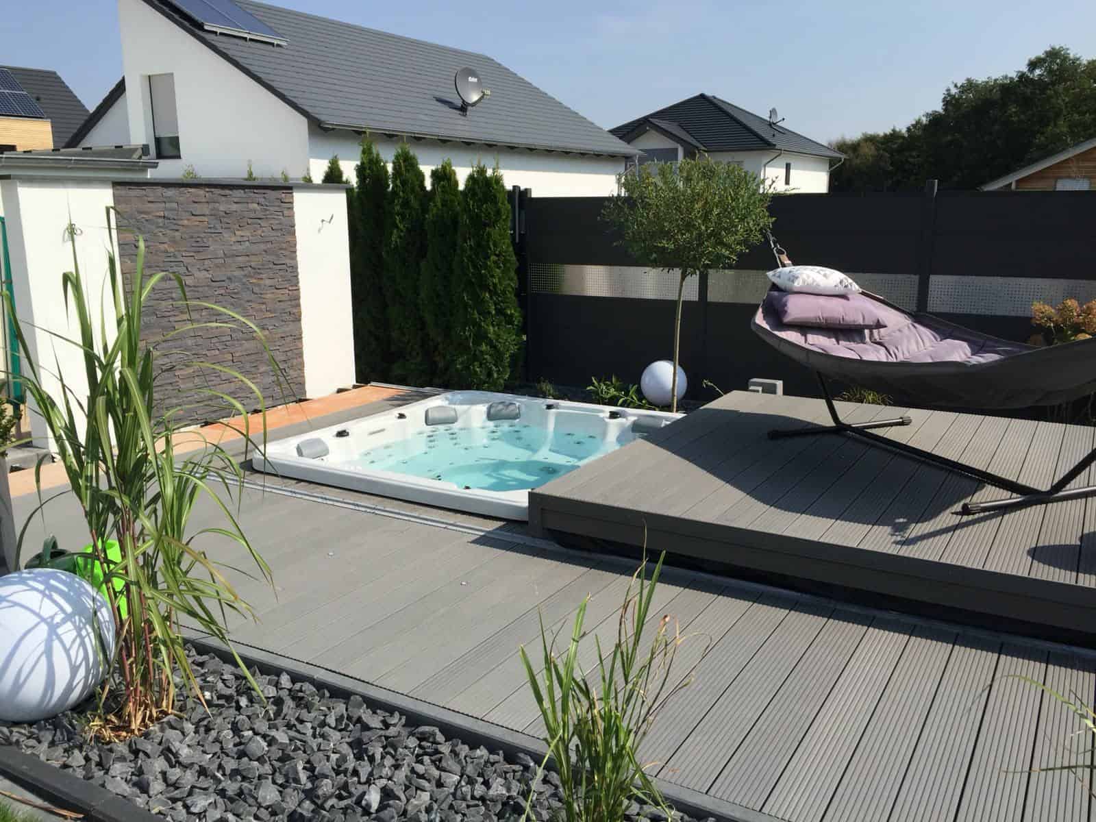 Wir können euch aber schon einmal verraten, dass jedes unserer Tinyhäuser einen eigenen Whirlpool hat. Außerdem gibt es eine Sauna, einen Swimspa und eine Fläche zum sonnen für all unsere Gäste.